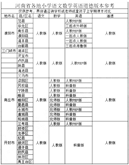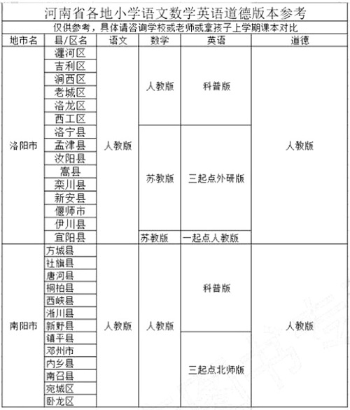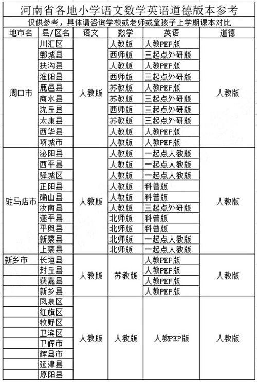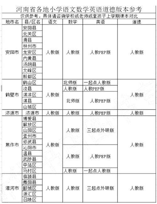 1.3:2026年春季河南小学阶段使用什么版本的英语课本?