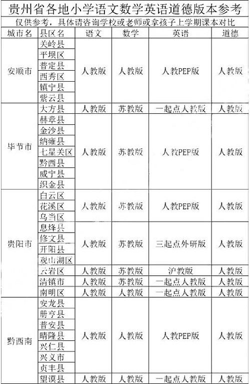 1.3:2026年春季贵州小学阶段使用什么版本的英语课本?