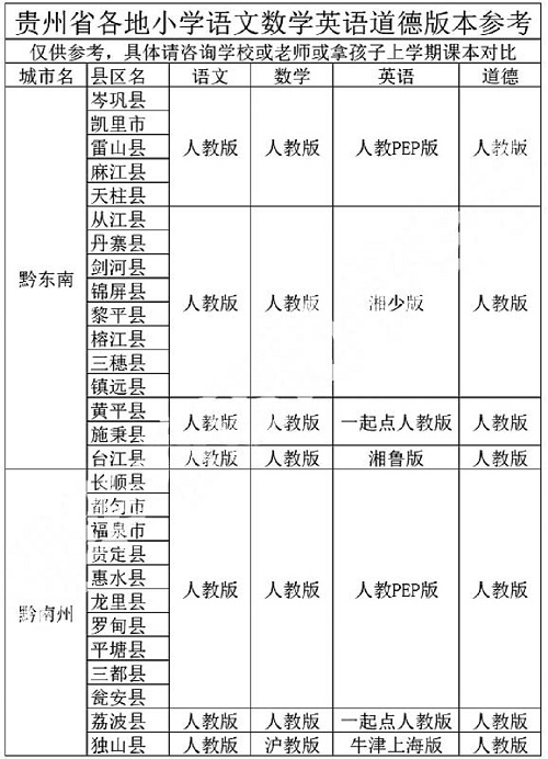 2026年春季贵州小学所使用的课本?