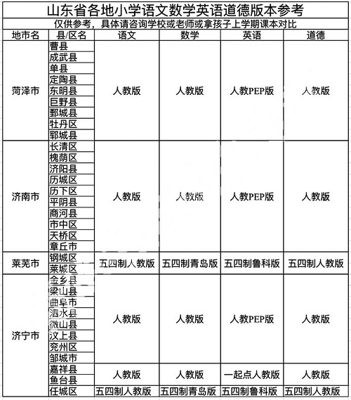 1.4:2026年春季山东小学阶段使用什么版本的道德与法治课本?