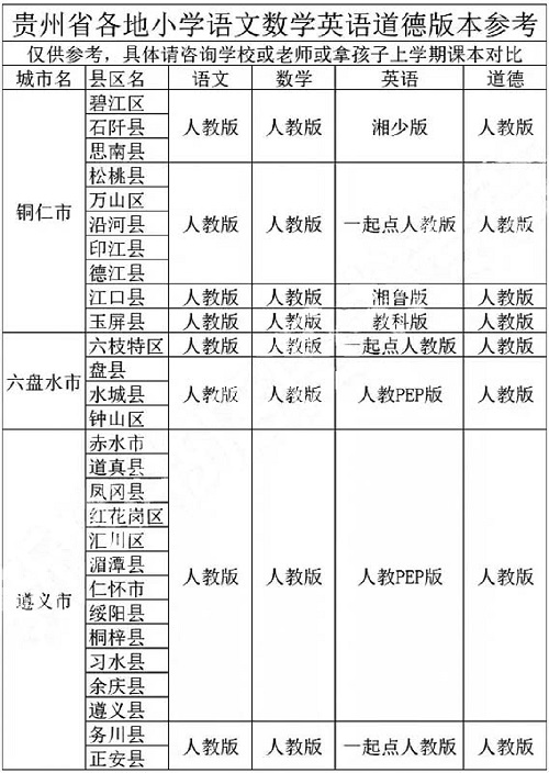 1.4:2026年春季贵州小学阶段使用什么版本的道德与法治课本?