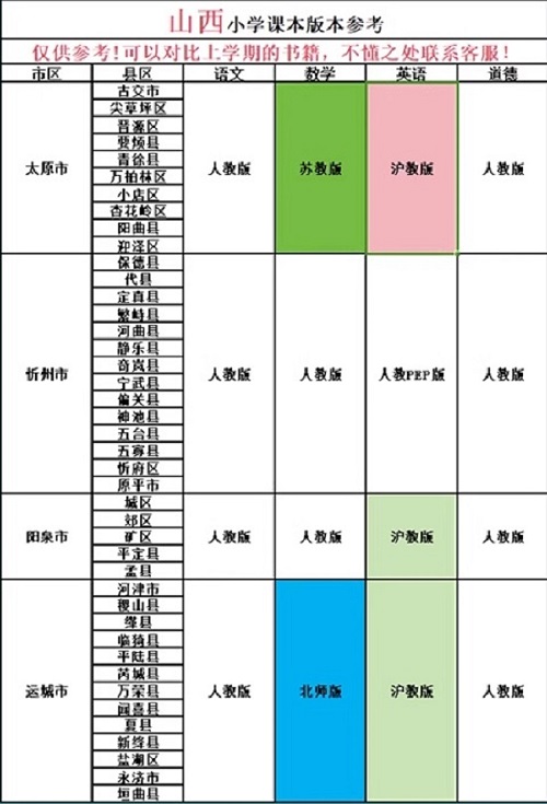 1.3:2026年春季山西小学阶段使用什么版本的英语课本?